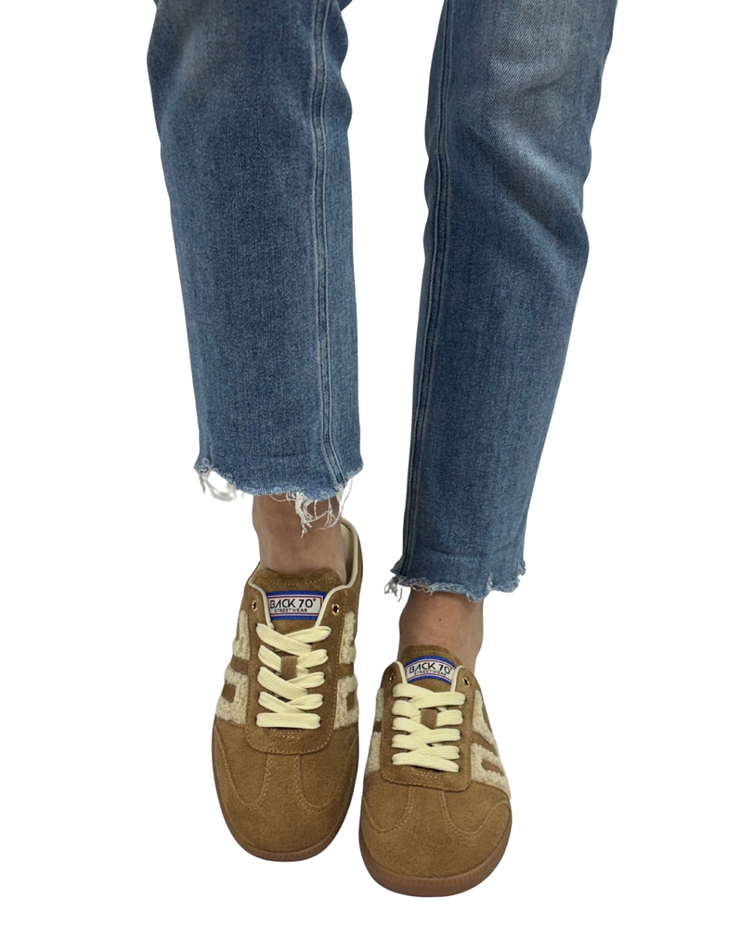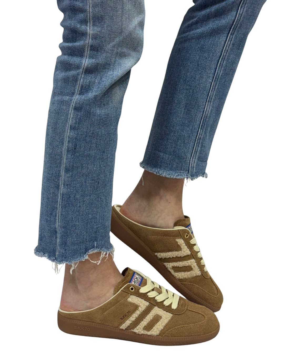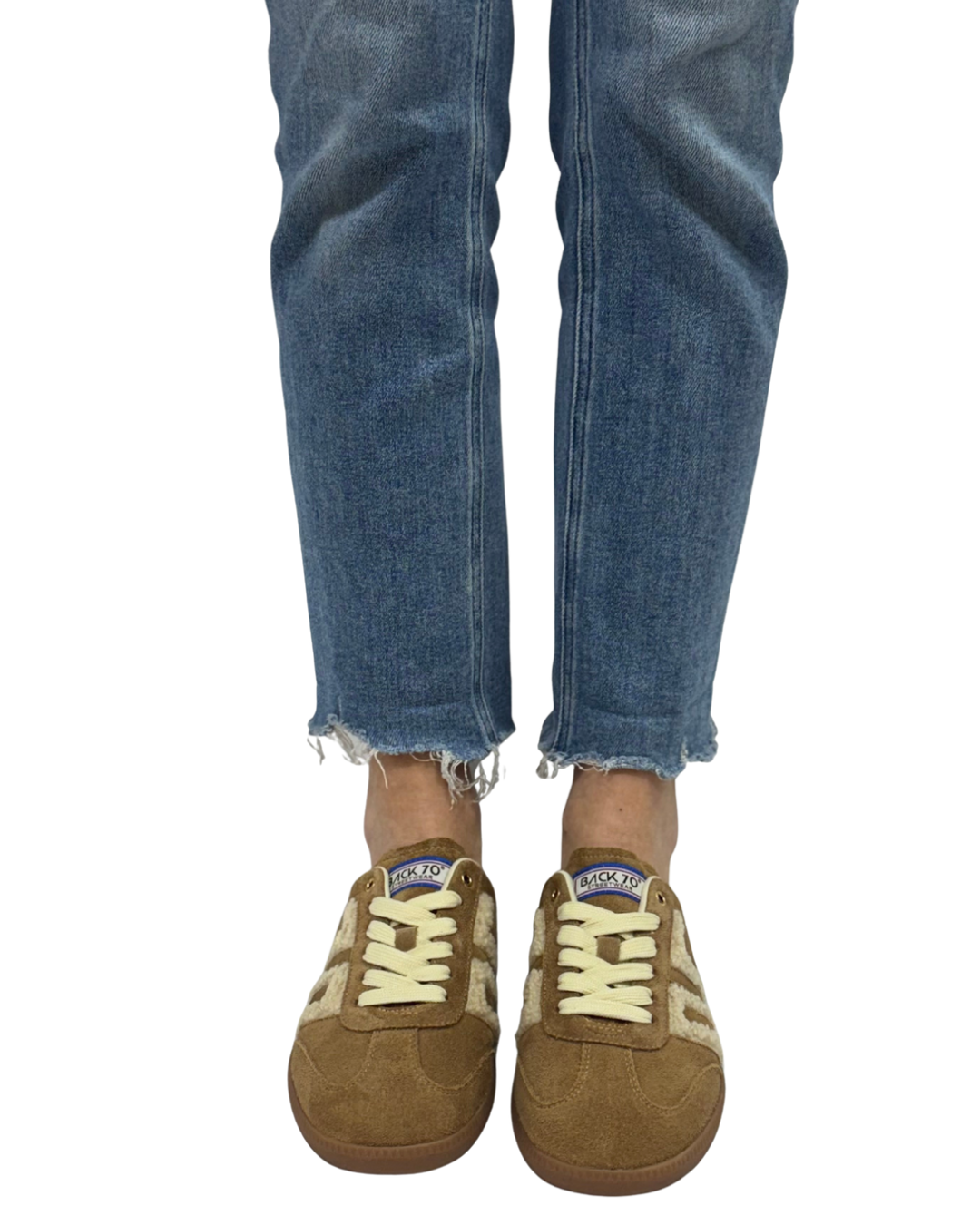 - Handcrafted suede and teddy textile upper